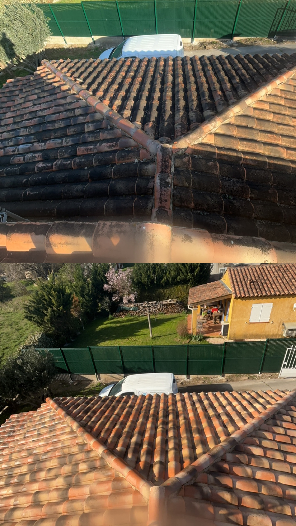 - Démoussage approfondi pour éliminer mousses et lichens.